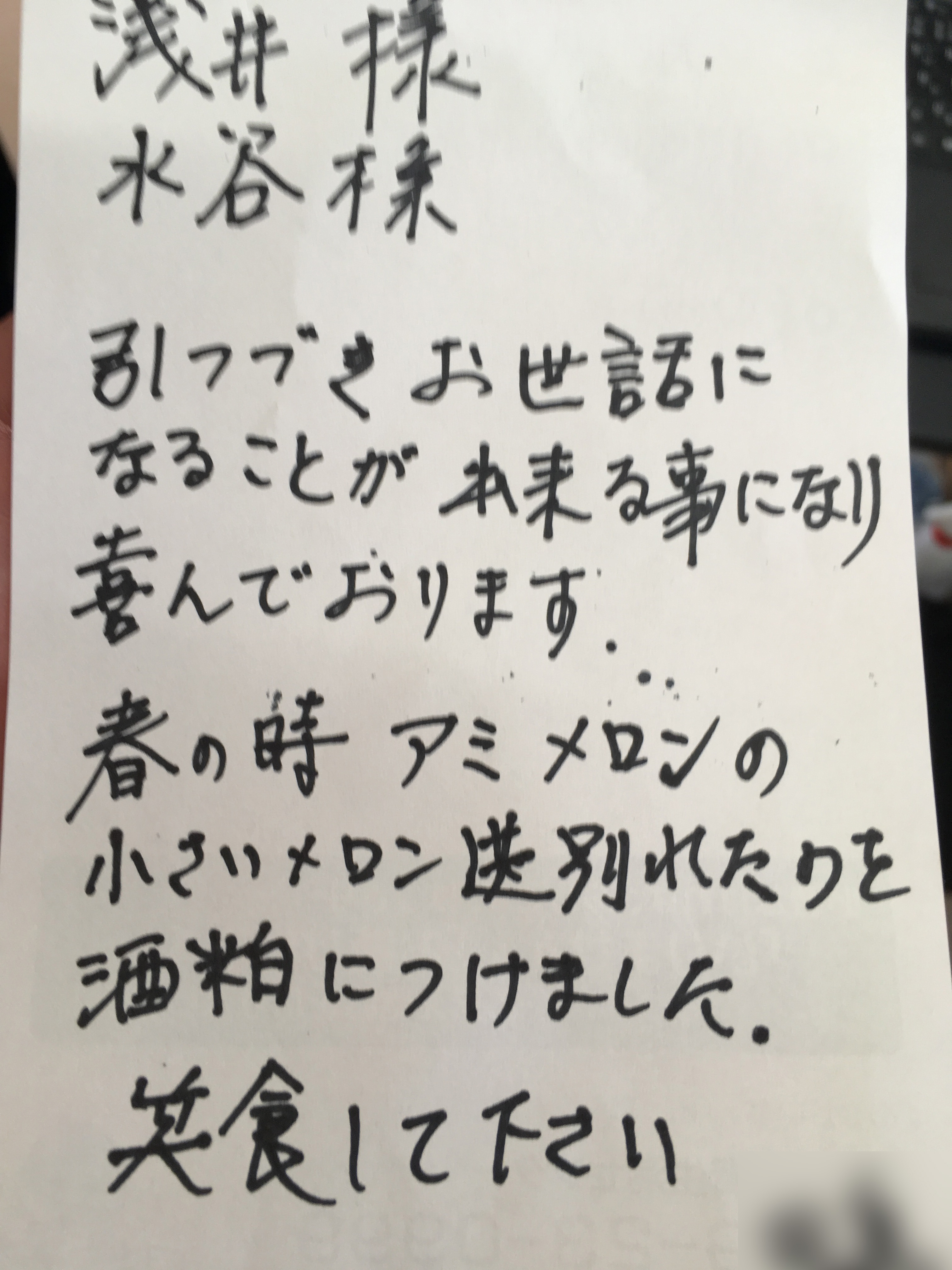 利用者さんの手づくり【お漬物】 ブログ :2017/10/18 いつもありがとうございます。 利用者さんのお手紙つきで、手作りのお漬物をいただきました。 メロンのお漬物だそうです。初めて見ました。そして、しかもかなり美味しいです。 そして、えだまめまでいただきました。 利用者さんの温かいお心遣いをありがたく頂戴しておきます。 twitter Facebook Google+ はてブ Pocket